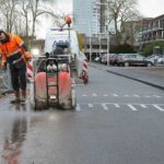 Asfalt zagen aan de Rosegracht in Terneuzen