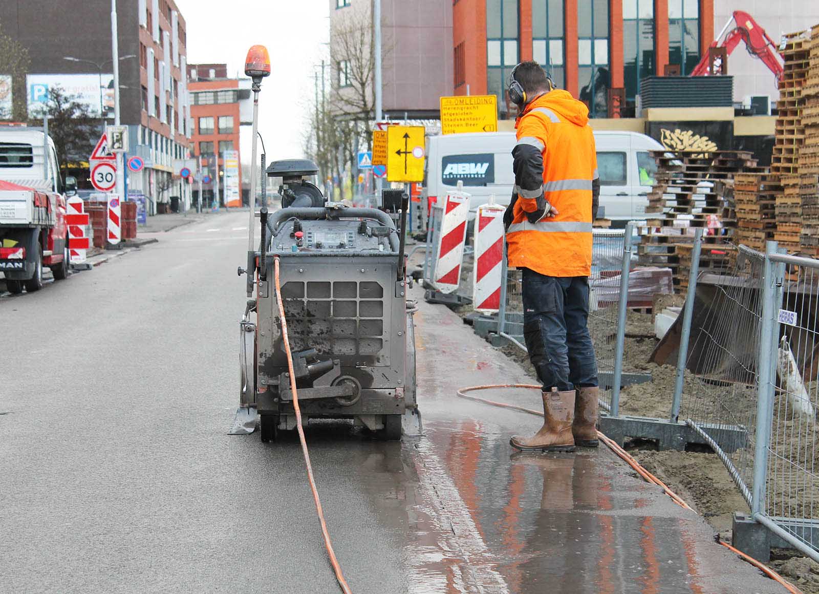 Asfalt zagen aan de Rosegracht in Terneuzen